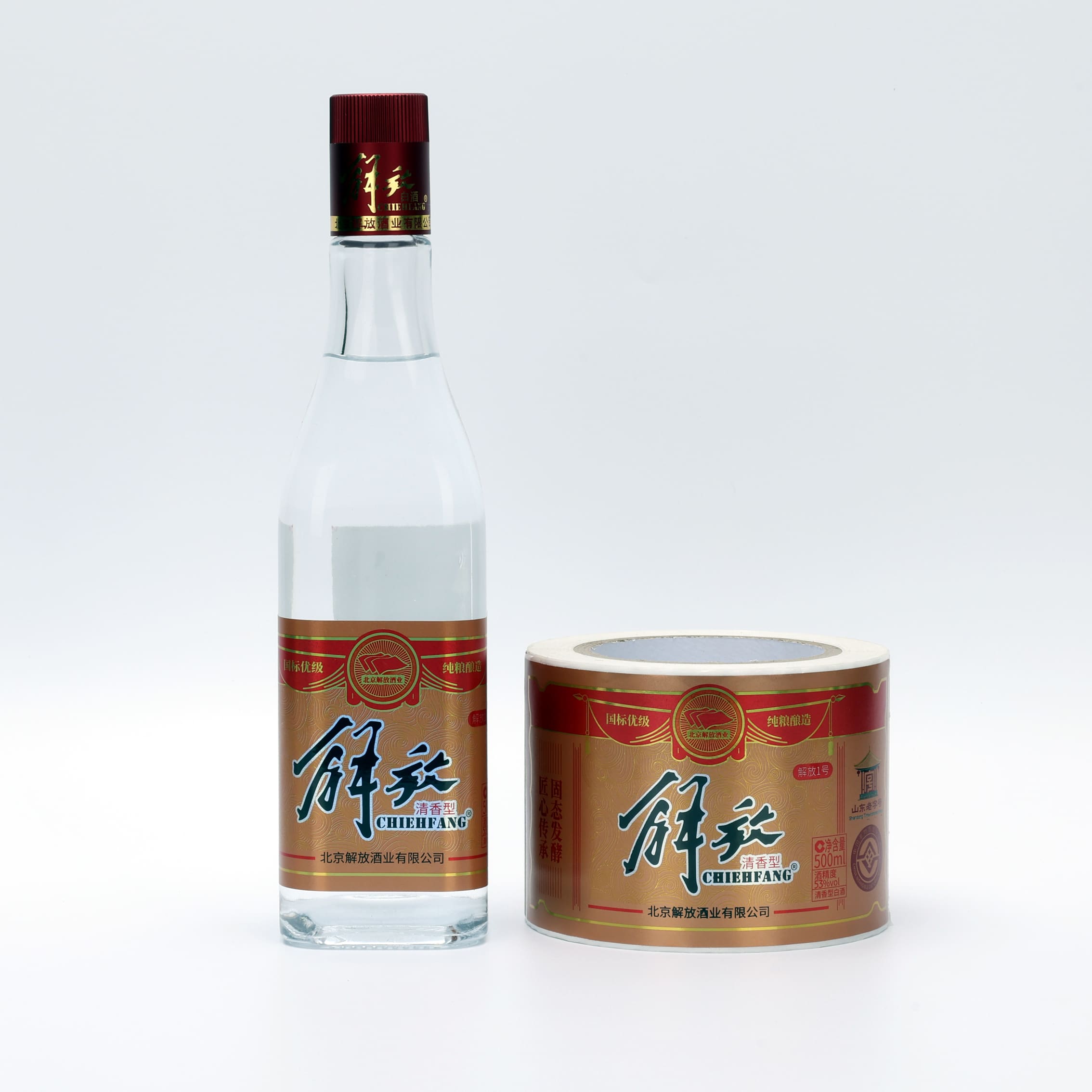 Dieses Etikett wurde speziell für Baijiu-Flaschen (chinesischer Weißwein) entwickelt und zeichnet sich durch seine rechteckige Form aus, die sich für flache oder leicht gewölbte Glasbehälter eignet. Das Etikett ist mit UV-Spots Technologie, die eine kräftige, hochdeckende Farbgebung und langlebige Oberflächengrafiken ermöglicht. Dieses Druckverfahren eignet sich ideal für die Darstellung großer chinesischer Schriftzeichen und traditioneller Designelemente mit starker visueller Wirkung und hoher Verschleißfestigkeit und eignet sich daher besonders für Spirituosenverpackungen.